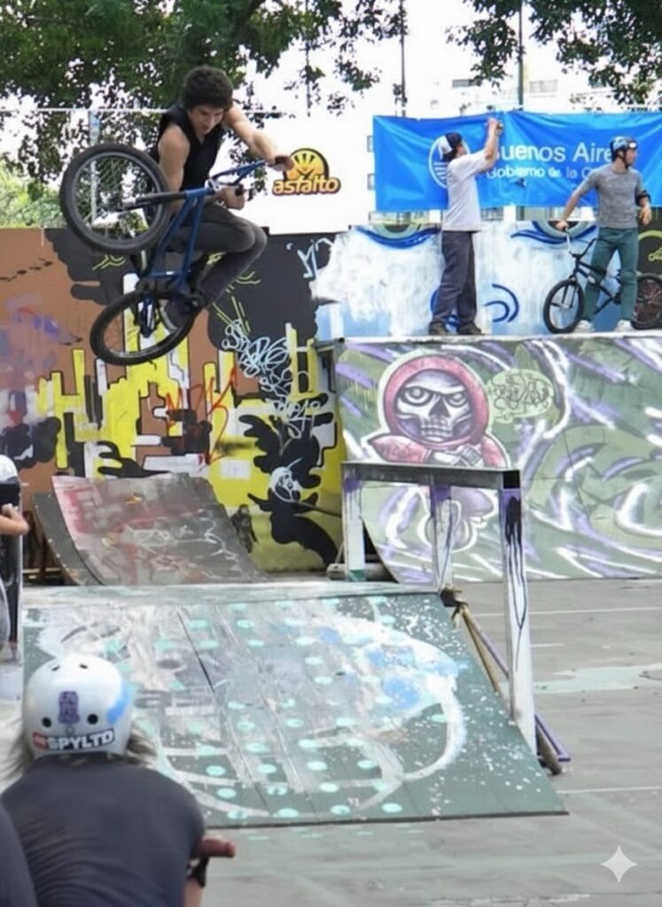“Na época em Buenos Aires só tinha duas pistas de madeira, e eram pagas. Então a gente andava mais na rua. As vezes dividíamos sessões com Laureano Vallejos, Julio Corpa, Kiko Blasco, Loquillo… vários deles já vinham pro Brasil e falavam das pistas públicas.